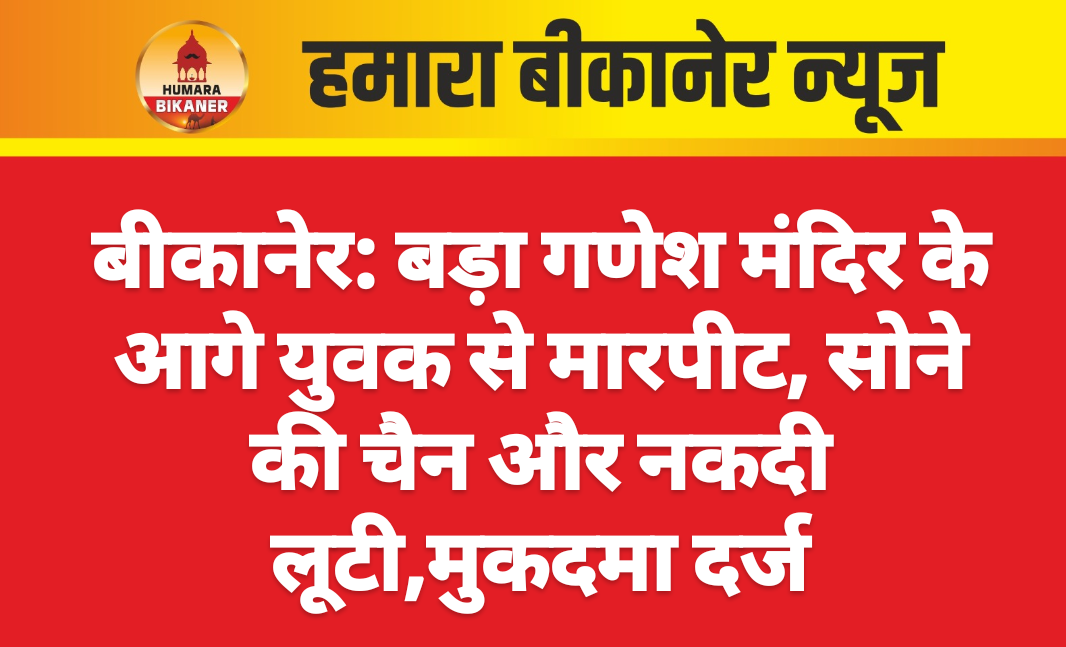 बीकानेर।बड़ा गणेश जी मंदिर के आगे युवक के साथ मारपीट करने का मामला सामने आया है। इस सम्बंध में नयाशहर पुलिस थाने में ईदगाह बारी के अंदर रहने वाले देवकिशन उपाध्याय ने मुकेश पुरोहित, शुभम पुरोहित व तीन अन्य के खिलाफ मुकदमा दर्ज करवाया है। घटना नत्थुसर गेट के बाहर बड़ा गणेश जी मंदिर के आगे 5 जनवरी की शाम की है।इस सम्बंध में परिवादी ने बताया कि वह अपने दोस्त राहुल के साथ बाइक पर जा रहा था। इस दौरान बड़ा गणेश जी मंदिर के आगे आरोपियों ने उसकी बाइक को रोका और उसके साथ थाप-मुक्कों से मारपीट की। परिवादी ने बताया कि आरोपियों ने उसके साथ मारपीट कर गले में पहनी सोने की चैन, जेब से 8-10 हजार रूपए छीन लिए। पुलिस ने प्रार्थी की रिपोर्ट के आधार पर मुकदमा दर्ज कर जांच शुरू कर दी है।