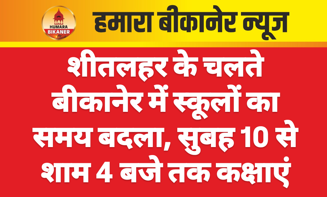 बीकानेर। बीकानेर सहित प्रदेशभर में जारी शीतलहर और कड़ाके की ठंड को देखते हुए जिला प्रशासन ने बड़ा आदेश जारी किया है। जिला कलेक्टर बीकानेर की ओर से जारी निर्देशों के अनुसार, जिले के समस्त कक्षा 12वीं तक के विद्यालयों और मदरसों का समय सुबह 10 बजे से शाम 4 बजे तक निर्धारित किया गया है। इसके साथ ही आंगनबाड़ी केंद्रों का समय भी बदला गया है। नए आदेशों के अनुसार आंगनबाड़ी प्रातः 10 बजे से दोपहर 2 बजे तक संचालित होंगी।