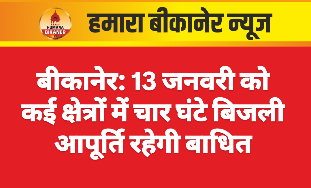 बीकानेर। जीएसएस /फीडर रख-रखाव, पेड़ो की छँटाई आदि जो अत्यावश्यक है, के दौरान मंगलवार 13 जनवरी को प्रात: 10:00 बजे से दोपहर 02:00 बजे तक निम्न स्थानों पर विद्युत आपूर्ति बाधित रहेगी। माहेश्वरी धर्मशाला, वाटर टेंक, अंबेडकर सर्किल, एक्स-रे गली, मारवाड़ अस्पताल का क्षेत्र, डीआरएम आफिस, मार्डन मार्केट, रेल्वे क्वार्टर, हनी आईस कीम, ट्रेफिक थाना, स्टोर (हौस्पिटल जीएसएस के सामने), डायलसिस सेन्टर, सुपर स्पेशयलिटि सेन्टर, वीरा सेवा सदन, आंखो का अस्पताल, डूपलेक्स कॉलोनी, पटेल नगर, पंचसती सर्किल, आर्दश कॉलोनी, सादुलगंज, भैरूजी मन्दिर, भैरूजी गली, कोयला गली, अलख सागर कुआ, माल गोदाम रोड, बोथरा कॉपलेक्स, मार्डन मार्केट, केईम रोड, बी सेठिया गली, गणपति प्लाजा, खंजाची मार्केट, केईम रोड, हनुमान मन्दिर, हेड पोस्ट ऑफिस, ओल्ड बस स्टेण्ड, चौतिना कुआं, चौतिना मौहल्ला, कुंज गेट, संतोषी माता मन्दिर, पब्लिक पार्क, रतन बिहारी पार्क, कोट गेट, जुनागढ फोर्ट का क्षेत्र।