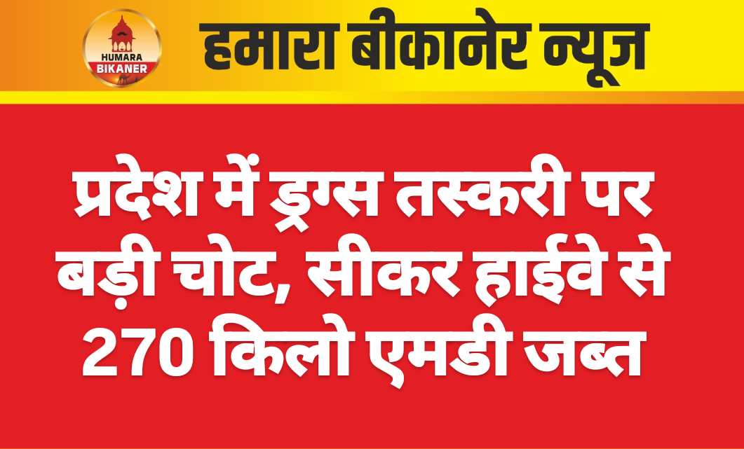 प्रदेश से बड़ी खबर सामने आयी है। जहां पर बड़ी मात्रा में एमडी ड्रग्स जब्त की गयी है। यह कार्रवाई राजस्व खुफिया निदेशालय ने सोमवार देर रात बड़ी कार्रवाई की। डीआरआई ने स्थानीय पुलिस की मदद से सीकर हाईवे पर नाकाबंदी कर करोड़ों रुपए की एमडी ड्रग्स पकड़ी है। एक गाड़ी में 270 किलोग्राम एमडी ड्रग्स भरकर तस्करी के लिए ले जाई जा रही थी। डीआरआई सिक्योरिटी एजेंसियों के साथ मिलकर कार्रवाई के दौरान पकड़े गए संदिग्धों से पूछताछ कर रही है।
