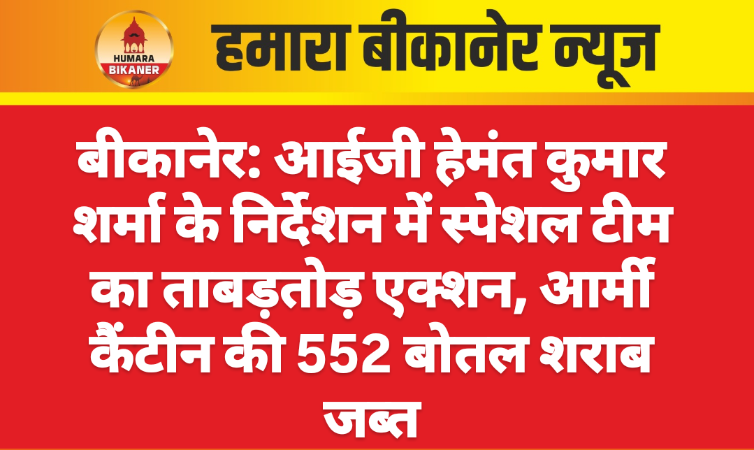 बीकानेर।आईजी हेमंत कुमार शर्मा के निर्देशन में स्पेशल टीम का लगातार एक्शन जारी है। आईजी हेमंत कुमार शर्मा द्वारा रेंज में अवैध मादक पदार्थो के खिलाफ लगातार अभियान जारी है। इसी कड़ी में अपराध व सतर्कता रेंज अतिरिक्त पुलिस अधीक्षक पवन कुमार भदौरिया, प्रभारी स्पेशल टीम संदीप पूनिया की टीम ने यह कार्रवाई की है।
