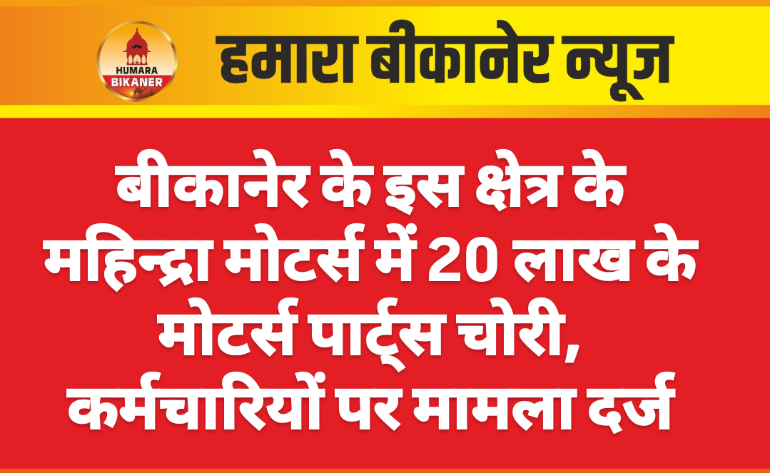 बीकानेर।करीब 20 लाख के मोटर्स पार्ट्स के सामान चोरी कर दूसरी जगह पर कम कीमत में बेच देने की खबर सामने आयी है। इस सम्बंध में जेएनवीसी पुलिस थाने में उप महाप्रबंधक त्रिभुवन ङ्क्षसह ने कन्हैयालाल छींपा, महेश उमावत, सुहेल, फेजान के खिलाफ मुकदमा दर्ज करवाया है। घटना महिन्द्रा मोट्र्स जयपुर रोड़ बीकानेर में जून 2023 से लगातार जारी है।इस सम्बंध में परिवादी ने बताया कि आरोपी महिन्द्रा मोट्र्स में काम करते है। परिवादी ने बताया कि जून 2023 से लगातार ये सभी स्टोर से सामान को चोरी करते हुए दूसरी जगह पर कम कीमत में बेच दिया। परिवादी ने बताया कि आरोपियों ने करीब 20 लाख रूपए का माल दूसरी जगह पर बेच दिया। पुलिस ने प्रार्थी की रिपोर्ट के आधार पर मुकदमा दर्ज कर जांच शुरू कर दी है।