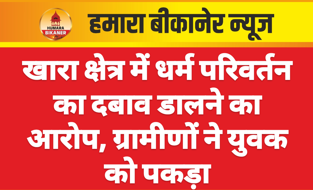 बीकानेर। जिले में तथाकथित धर्म परिवर्तन करने का दबाव डालने का सनसनीखेज मामला सामने आया है। मामला जिले की नजदीकी गांव खारा क्षेत्र का है। जहां स्थानीय लोगों गांव में बने चर्च के एक व्यक्ति पर चूल्हे ठीक करने के बहाने घरों की रेकी कर बीमार व्यक्ति के घरों पर जाकर उनसे ईसाई धर्म की बाते कर ईसाई धर्म अपनाने का दबाव डालने का आरोप लगाया है। जिसे स्थानीय लोगों ने रंगे हाथों पकड़ कर जामसर थाने में ले आए। आरोपी को स्थानीय निवासी गजे सिंह, पुष्कर नाथ महाराज, मांगी लाल सुथार, पूर्णदास स्वामी,दीनाराम, पंकज शर्मा, हेतराम ओड व पवन हिंदू आदि ने मिलकर थाने लेकर आए। स्थानीय लोगों ने इस मामले में हिंदू जागरण मंच के कैलाश भार्गव व शैलेश गुप्ता को सूचना दी। जानकारी के अनुसार इस दौरान थाने के आगे स्थानीय लोगों की भारी भीड़ जमा हो गई।