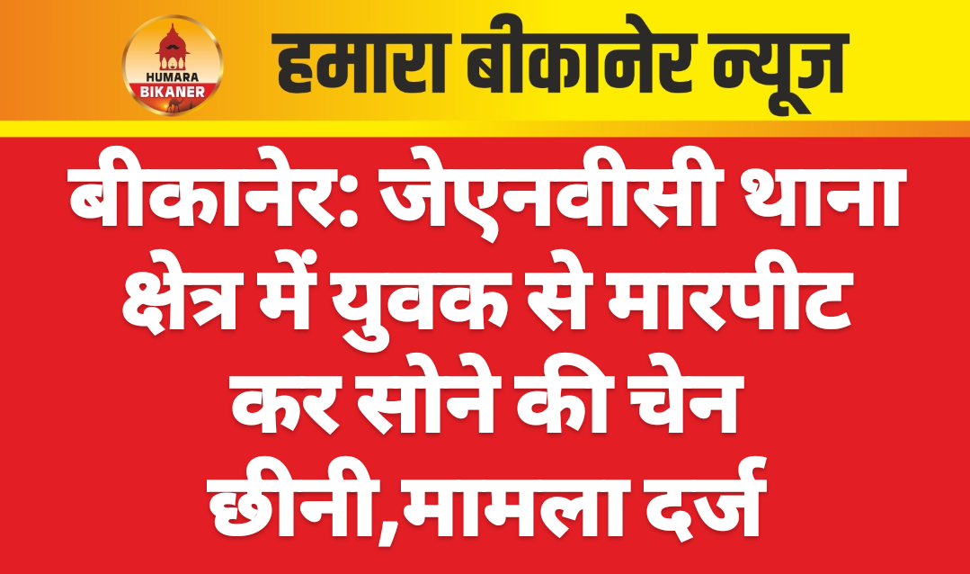 बीकानेर। शहर जेएनवीसी थाना क्षेत्र में युवक के साथ मारपीट कर सोने की चेन छीनने का मामला सामने आया है।परिवादी पकंज बदरा पुत्र हेमंत बदरा निवासी हाउसिंग बोर्ड पवनपुरी ने पुलिस को दी रिपोर्ट में बताया कि नौ जनवरी को वह और उसका दोस्त मोटरसाइकिल से दूध लेने जा रहे थे। तभी संजय पार्क के पीछे वाली गली, पवनपुरी में आठ -नौ अज्ञात लडक़े पहले से वहां शराब पी रहे थे।उन्होंने रास्ता रोककर उन्हें घेर लिया और गाली – गलौच करते हुए मारपीट शुरू कर दी। मारपीट के दौरान तीन – चार युवकों ने उसके चेहरे पर हमला किया और उसके गले से सोने की चेन तोडक़र फरार हो गए।