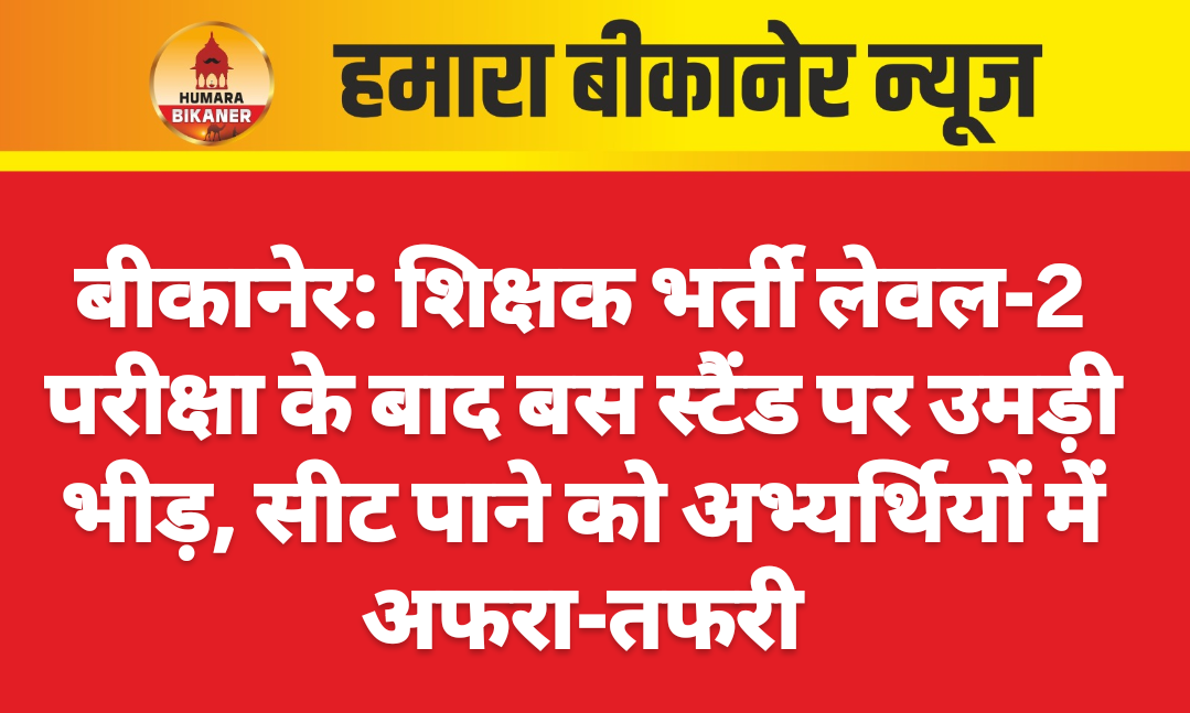 बीकानेर। शिक्षक भर्ती परीक्षा में आज से लेवल-2 की परीक्षा हुई। सुबह एवं दूसरी पारी पारी में अभ्यर्थी परीक्षा देने पहुंचे थे। एग्जाम खत्म होने के बाद अचानक बस स्टैंड पर भीड़ बढ़ गई। अभ्यर्थी बसों में सीट लेने के लिए संघर्ष करते रहे। बीकानेर रोडवेज बस स्टैंड पर भी अभ्यर्थी खिड़कियों से घुसते नजर आये। वहीं भरतपुर में भी खिड़कियों से अभ्यर्थी बस में घुसने लगे थे। यह देख रोडवेज कर्मी ने डंडा निकाल लिया और कैंडिडेट्स को धमकाकर बस से उतारा। कई अभ्यर्थी बस की खिडक़ी पकडक़र लटक गए थे। बता दें कि शिक्षक भर्ती परीक्षा के लिए प्रदेश के 14 जिलों में सेंटर्स बनाए गए है। पहली पारी की परीक्षा सुबह 10 बजे से दोपहर 12.30 बजे तक हुई। सुबह की पारी में 9 बजे तक एंट्री दी गई।