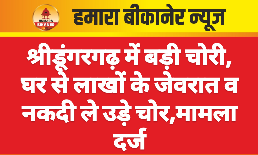 बीकानेर। श्रीडूंगरगढ़ कस्बे में चोरों के हौसले बुलंद होते जा रहे हैं। आए दिन हो रही चोरी की वारदातों के बीच बीती रात एक बड़ी चोरी की घटना ने क्षेत्र में दहशत फैला दी। गांव जैतासर में चोरों ने एक घर को निशाना बनाते हुए लाखों रुपये के सोने-चांदी के आभूषण व नगद राशि पर हाथ साफ कर दिया, जिससे पीडि़त परिवार गहरे सदमे में है।