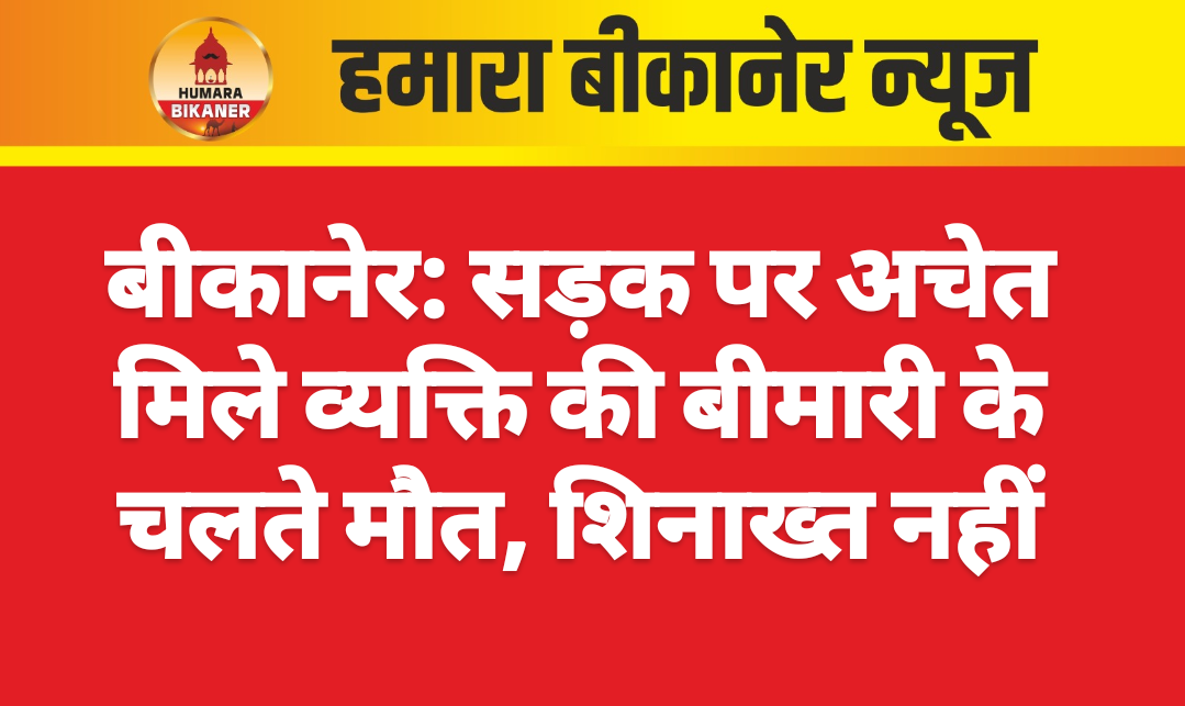 बीकानेर।सड़क पर अचेत अवस्था में मिले व्यक्ति की बीमारी के चलते मौत हो जाने की खबर सामने आयी है। घटना कोटगेट पणुलिस थाना क्षेत्र के बान्द्राबास की है। जहां पर अचेत अवस्था में व्यक्ति मिला था। जिसे समाजसेवी आदर्श शर्मा द्वारा अस्पताल में भर्ती करवाया गया। अज्ञात व्यक्ति की पीबीएम में इलाज के दौरान मौत हो गयी। इस सम्बंध में आदर्श शर्मा ने कोटगेट थाने में मर्ग दर्ज करवायी हे । फिलहाल मृतक की शिनाख्त नहीं हो पायी है। पुलिस ने मर्ग दर्ज कर जांच शुरू कर दी है।