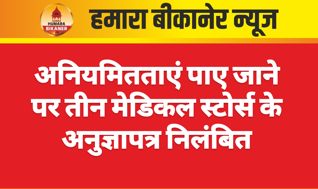 बीकानेर, 23 जनवरी। जांच के दौरान विभिन्न अनियमितताएं पाए जाने पर तीन मेडिकल स्टोर्स के अनुज्ञापत्र निलम्बित किए गए है।