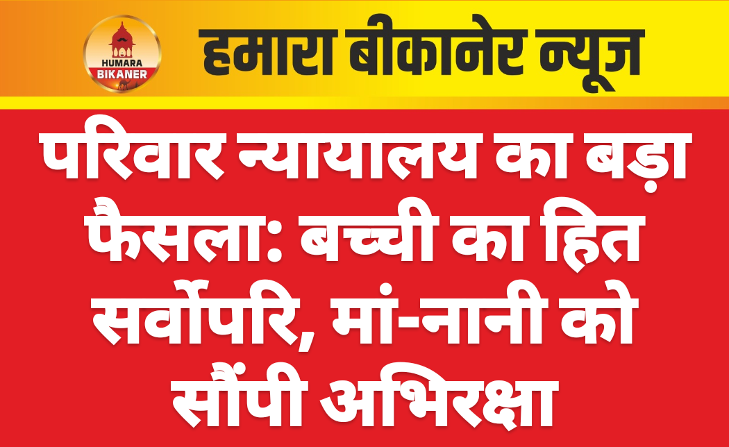 , बीकानेर। परिवार न्यायालय संख्या 3 के पीठासीन अधिकारी अशोक चौधरी ने नाबालिग बालिका की अभिरक्षा को लेकर महत्वपूर्ण आदेश जारी किया है। न्यायालय ने सुनवाई करते हुए बालिका की शरीरिक अभिरक्षा मां और नानी को सौंपने के निर्देश दिए हैं। यह आदेश बालिका के सर्वोपरि हित और कल्याण को ध्यान में रखते हुए पारित किया गया।परिवार न्यायालय में प्रस्तुत याचिका के अनुसार, प्रार्थीनी बालिका की माता तथा उसकी नानी हैं। याचिका में बताया गया कि 29 नवंबर 2024 को अप्रार्थी पिता कथित रूप से जबरन उसके घर में घुसकर नाबालिग बालिका को अपने साथ ले गया था। इसके बाद बालिका की अभिरक्षा को लेकर न्यायालय की शरण ली गई।