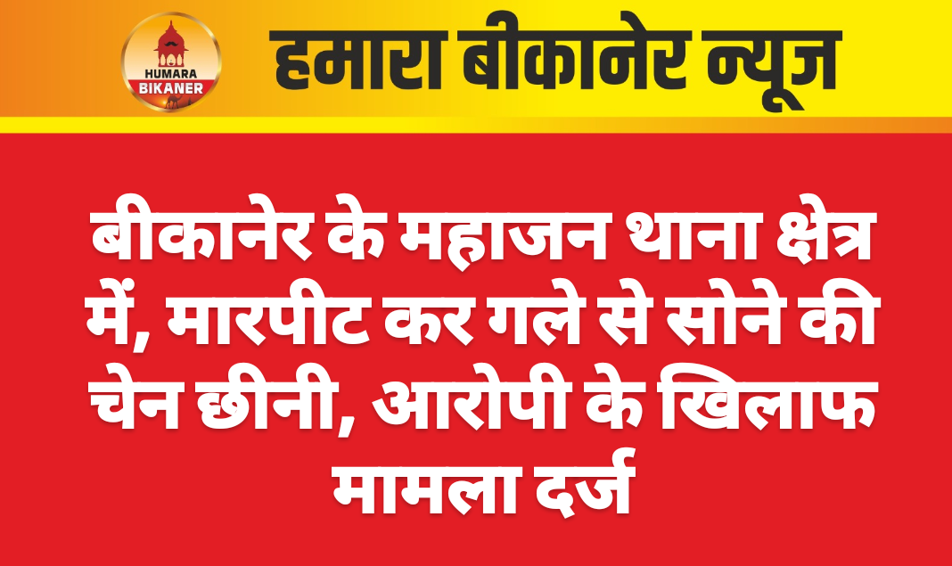 बीकानेर।मारपीट कर गले से सोने की चैन छीन ले जाने का मामला सामने आया है। इस सम्बंध में महाजन पुलिस थाने में वार्ड न. 11 महाजन निवासी सुनील ने संदीप के खिलाफ मुकदमा दर्ज करवाया है। घटना 22 जनवरी की शाम को 7 बजे के आसपास की है। इस सम्बंध में परिवादी ने बताया कि आरोपी ने उसके साथ मारपीट की और गले से सोने की चैन छीनकर ले गए। पुलिस ने प्रार्थी की रिपोर्ट के आधार पर मुकदमा दर्ज कर जांच शुरू कर दी है।
