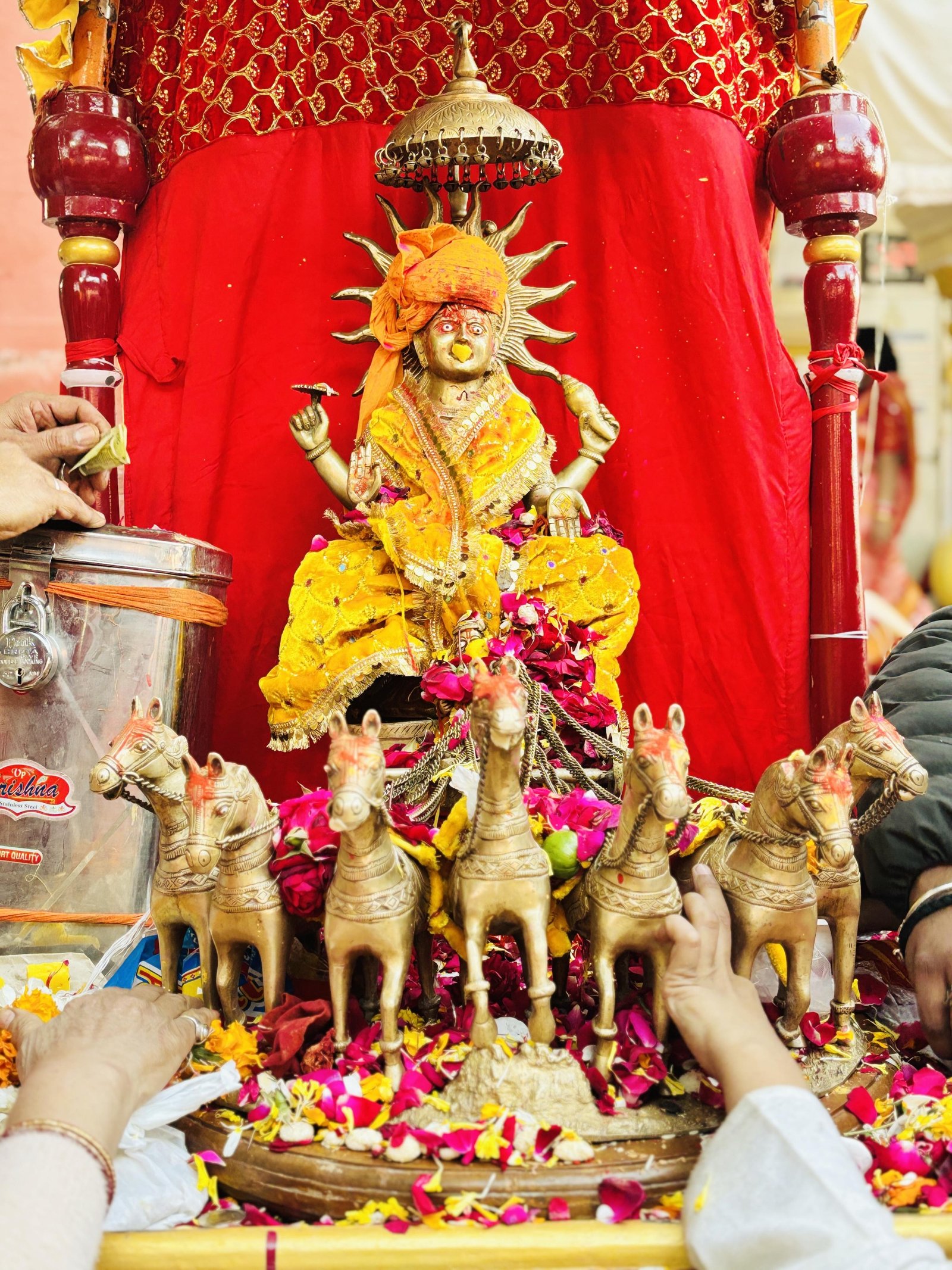 बीकानेर। जय भास्कर की गूंज के साथ रविवार सुबह शाकद्वीपीय समाज द्वारा भगवान सूर्यनारायण की रथयात्रा निकाली गई। रवि रश्मि युवा संगठन के प्रणव भोजक ने बताया कि श्रीलक्ष्मीनाथजी मंदिर से प्रारंभ हुई सूर्य भगवान की रथ यात्रा चूड़ी बाजार, भट्टड़ों का चौक, सेवगों का चौक, साले की होली, जसोलाई, मोहता चौक, आसानिया चौक, रांगड़ी चौक व बड़ा बाजार होते हुए वापस लक्ष्मीनाथजी मंदिर पहुंची। ऊंट-घोड़ों पर समाज के बच्चे साफा बांधे व ढोल-ताशों के साथ जय भास्कर के जयघोष के साथ यह शोभायात्रा निकाली गई। सैकड़ों स्थानों पर रथ पर विराजित सूर्य भगवान का सामाजिक बंधुओं ने पूजन किया तथा पुष्पवर्षा से शोभायात्रा का स्वागत किया गया। रथयात्रा में इस बार महादेव, गणेश भगवान सहित अनेक देवताओं की सजीव झांकियां भी निकाली गई। सूर्य यज्ञ में सामाजिक बन्धुओं ने आहुतियां प्रदान कर पूजा-अर्चना की। राजस्थान प्रांतीय शाकद्वीपीय ब्राह्मण महासभा द्वारा जसोलाई तलाई पर रथ यात्रा का भव्य स्वागत किया गया। महासभा अध्यक्ष गणेशदास सेवग ने बताया कि सामाजिक एकजुटता व श्रद्धा भाव के साथ शोभायात्रा का विभिन्न स्थानों पर स्वागत किया गया तथा सामूहिक रूप से भगवान भास्कर का पूजन किया गया। प्रणव भोजक ने बताया कि श्री लक्ष्मीनाथ परिसर में समाज की विभुतियों का अभिनंदन किया गया। इनमें गणेश दास सेवग, शिवचन्द भोजक, बसन्त सेवग, राजेन्द्र भोजक, राधेश्याम भोजक, बुलाकीदास सेवग, सुरेन्द्र शर्मा, उत्तमचन्द भोजक, चन्द्रशेखर शर्मा, चन्द्रकुमार भोजक, जुगलकिशोर सेवग, दिलीप सेवग, सुहानी शर्मा, चार्वी भोजक को सम्मानित किया गया। महासचिव राजेश शर्मा ने बताया कि अभिनन्दन समारोह में गंगानगर जिला मजिस्ट्रेट अजय भोजक, बजरंगलाल सेवग, महेश भोजक, बाबूलाल सेवग, केडी सेवग, दुर्गादत्त शर्मा, आरके शर्मा एवं बलदेव शर्मा का आतिथ्य रहा। इस दौरान कार्यकारणी सदस्य बजरंग शर्मा, शंकर सेवग, मनोज शर्मा, रविन्द्र शर्मा, दिलीप सेवग, जुगलकिशोर शर्मा, निलेश शर्मा, गणेश शर्मा, शिवरतन सेवग, विकास शर्मा आदि ने पूजन किया।