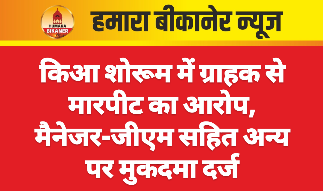 बीकानेर। गंगाशहर नोखा रोड़ स्थित किआगाड़ी शोरूम में ग्राहक के साथ मारपीट के मामले में गंगाशहर पुलिस थाने में शोरूम मैनेजर, जीएम व अन्य के खिलाफ मुकदमा दर्ज हुआ है। पुलिस के अनुसार यह रिपोर्ट शेरेरा निवासी गुलाराम पुत्र गिरधारीराम जाट ने दर्ज करवाई है। परिवादी ने बताया कि वह 28 जनवरी दोपहर अपने दोस्त भजनलाल के साथ किआ शोरूम में अपनी किआ क्रेस गाड़ी में जीपीएस सिस्टम लगवाने गया था। जीपीएस के पैसे गाड़ी खरीदते समय पहले ही लिए जा चुके थे, इसके बावजूद उसे करीब दो घंटे तक शोरूम में बैठाए रखा और जीपीएस नहीं लगाया गया।