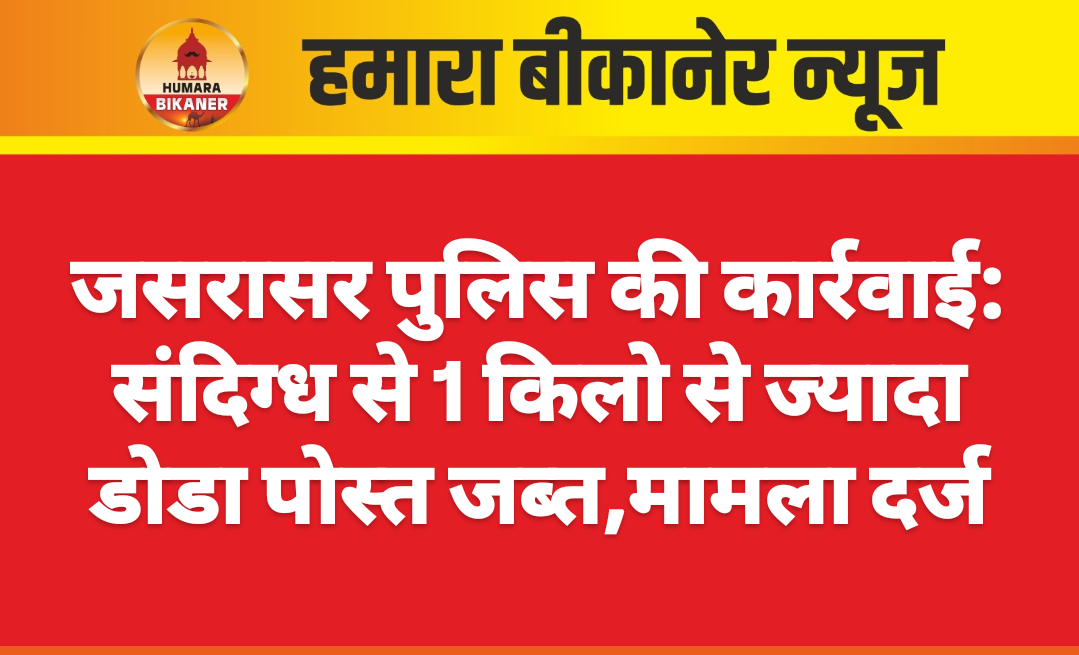 जसरासर थाना अधिकारी आलोक सिंह के नेतृत्व में पुलिस टीम ने थाना क्षेत्र में गश्त के दौरान पुलिस वाहन की लाइट देखकर एक संदिग्ध व्यक्ति घबरा गया और भागने लगा, जिस पर पुलिस टीम ने उसका पीछा कर पेड़ों के पास से पकड़ लिया। तलाशी लेने पर उसके पास से एक किलो से अधिक डोडा पोस्त बरामद हुआ। पुलिस के अनुसार पकड़े गए आरोपी की पहचान जसरासर गांव निवासी मुकनाराम के रूप में हुई है। आरोपी के खिलाफ जसरासर थाना में एनडीपीएस एक्ट के तहत मामला दर्ज कर आगे की जांच शुरू कर दी गई है।