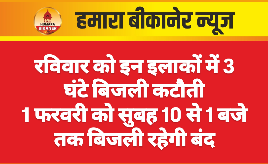 बिजली-कटौती पुष्करणा सावा 2026 के लिए जीएसएस/फीडर रख-रखाव, पेड़ो की छँटाई आदि किया जाना है जिसके दौरान रविवार 01 फरवरी को प्रातः 10:00 बजे से दोपहर 01:00 बजे तक निम्न स्थानों पर विद्युत आपूर्ति बाधित रहेगी।