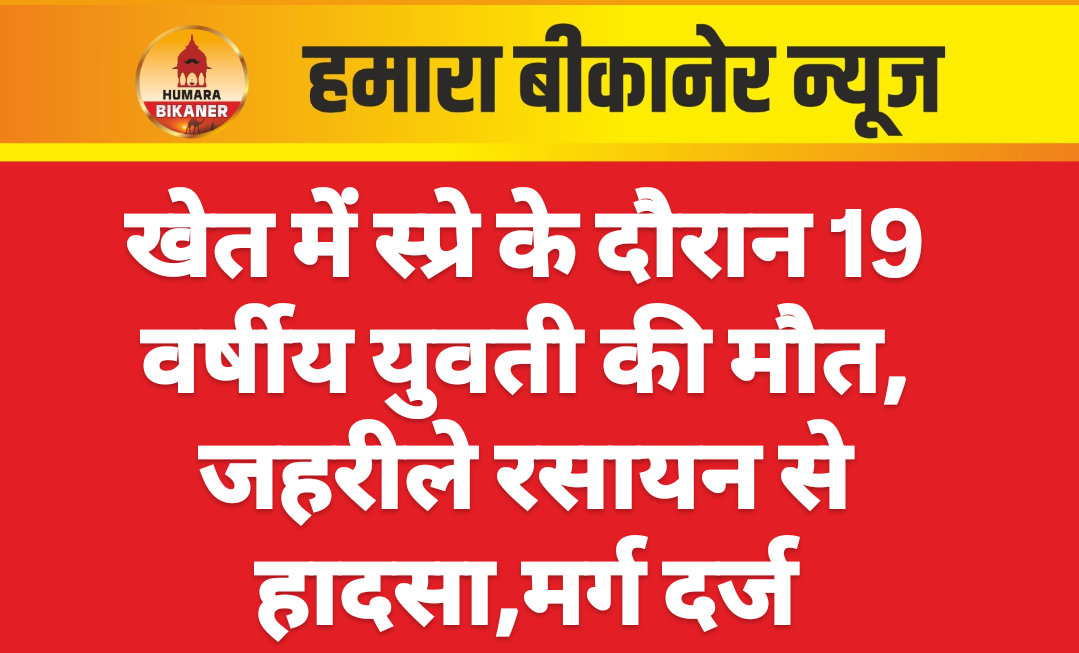 बीकानेर।19 वर्षीय युवती की जहरीले स्प्रे के कारण मौत हो जाने की खबर सामने आयी है। घटना शेरूणा पुलिस थाना क्षेत्र के रोही शेरूणा में 26 जनवरी की शाम को 4 बजे के आसपास की है। इस सम्बंध में मृतका के पिता जैनाराम पुत्र सीजीराम ने रिपोर्ट दी है। परिवादी ने बताया कि उसकी बेटी गायत्री खेत में स्प्रे करने के समय जहरीला स्प्रे उसकी बेटी के चढ़ गया। जिसके चलते उसकी बेटी की मौत हो गयी। पुलिस ने प्रार्थी की रिपोर्ट के आधार पर मर्ग दर्ज कर जांच शुरू कर दी है।