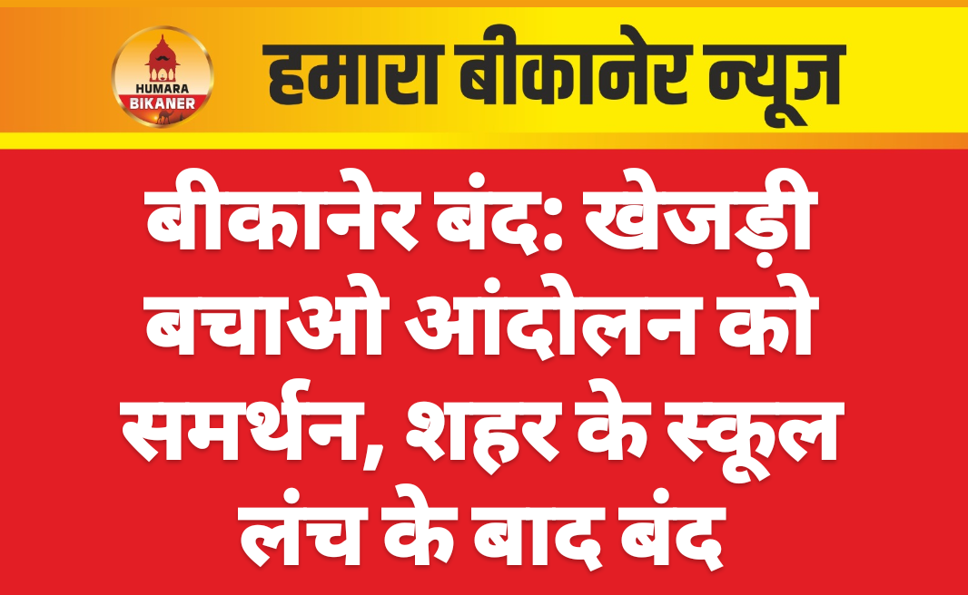 बीकानेर। खेजड़ी बचाओ आंदोलन के तहत आज बीकानेर बंद की घोषणा की गई है। पर्यावरण प्रेमियों की अपील के बाद प्रशासन अलर्ट हो गया है। बंद को लेकर व्यापारिक संगठनों ने समर्थन दिया है, वहीं शहरी क्षेत्र के सरकारी व निजी स्कूलों में आधे दिन की छुट्टी घोषित की गई है। पुलिस ने कानून-व्यवस्था बनाए रखने के लिए पुख्ता इंतजाम किए हैं। जिला शिक्षा अधिकारी (मुख्यालय) ने सोमवार को शहरी क्षेत्र के सभी सरकारी और निजी स्कूलों में लंच टाइम के बाद छुट्टी के आदेश जारी किए हैं।
