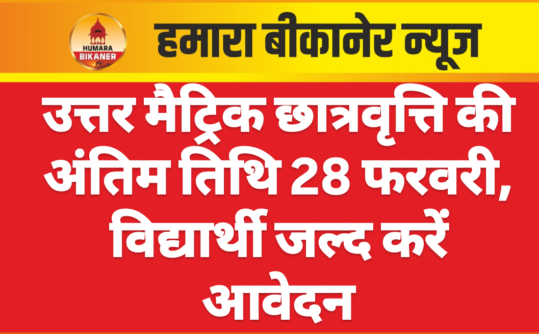 बीकानेर, 2 फरवरी। शैक्षणिक सत्र 2025-26 में राजस्थान के मूल निवासियों के लिए अनुसूचित जाति, अनु.जनजाति, विशेष समूह योजना (पूर्व में विशेष पिछड़ा वर्ग), अन्य पिछड़ा वर्ग, आर्थिक पिछड़ा वर्ग, विमुक्त, घुमन्तु एवं अर्द्वघुमन्तु वर्ग के विद्यार्थियों के लिए मुख्यमंत्री सर्वजन उच्च शिक्षा उत्तर मैट्रिक छात्रवृति योजनाओं की अंतिम तिथि 28 फरवरी निर्धारित की गई है।