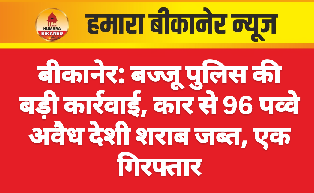 बीकानेर। अवैध शराब तस्करी की रोकथाम और धरपकड़ के लिए चलाए जा रहे विशेष अभियान के तहत जिले की बज्जू थाना पुलिस ने मंगलवार को अवैध शराब तस्करी के खिलाफ बड़ी कार्रवाई करते हुए नाकाबंदी के दौरान एक कार से दो कार्टून अवैध देशी शराब जब्त कर एक आरोपी को गिरफ्तार किया है। पुलिस टीम ने बज्जू से बीकानेर सडक़ पर हंसा होटल के पास एक कार को रोककर तलाशी ली। जिसमें कार से दो कार्टून अवैध देशी शराब बरामद हुई, जिसमें कुल 96 पव्वे शामिल थे। पुलिस ने आरोपी अनिल कुमार बिश्नोई निवासी बज्जू खालसा को गिरफ्तार कर कार को जब्त किया। पुलिस ने आबकारी अधिनियम के तहत मामला दर्ज कर जांच उप निरीक्षक प्रेम सिंह को सौप दी है। इस कार्रवाई में उप निरीक्षक मनीराम के नेतृत्व में हेड कांस्टेबल मैनपाल और कांस्टेबल हडमानराम की टीम ने महत्वपूर्ण भूमिका निभाई।
