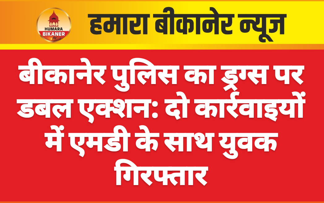 बीकानेर।बीकानेर पुलिस का अवैध नशीले पदार्थो के खिलाफ एक्शन जारी है। आईजी हेमंत शर्मा, एसपी कावेन्द्र सागर के निर्देशन पुलिस टीमों ने दो अलग-अलग कार्रवाई करते हुए एमडी के साथ युवकों को पकड़ा है।