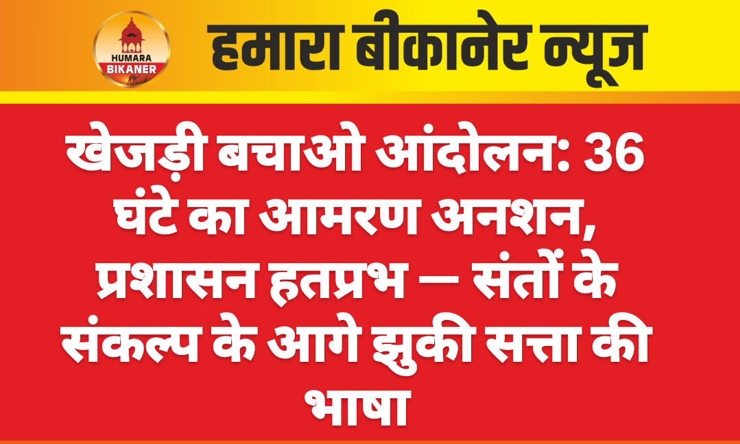 प्रकृति बचाओ आंदोलन के तहत चल रहे आमरण अनशन को 36 घंटे पूरे हो चुके हैं, लेकिन प्रशासन की नींद अब भी अधूरी है। खेजड़ी जैसे पवित्र और जीवनदायिनी वृक्ष को बचाने के लिए 29 भगवाधारी संतों के नेतृत्व में 80 महिलाओं सहित करीब 500 लोग अन्न-जल त्याग कर कलेक्ट्रेट परिसर में डटे हुए हैं। यह कोई सामान्य आंदोलन नहीं, बल्कि प्रकृति की अस्मिता और भविष्य की पीढ़ियों के अस्तित्व की लड़ाई है।अनशनकारियों ने पानी की एक बूंद तक गले से न उतारने का कठोर संकल्प लिया है। भूखे-प्यासे, लेकिन अडिग। शांत, लेकिन भीतर ज्वालामुखी। भजन-कीर्तन के बीच चल रहे इस आंदोलन में उस समय भावनाओं का सैलाब उमड़ पड़ा, जब सभी अनशनकारी महाराजा गंगा सिंह जी की प्रतिमा के पास स्थित खेजड़ी के वृक्ष तक पहुंचे और सामूहिक पूजा-अर्चना कर प्रशासन के सामने अपना “यक्ष प्रश्न” दोहराया—बिना हिंसा के, लेकिन पूरी दृढ़ता के साथ, अपनी मांगें मनवाकर ही रहेंगे।