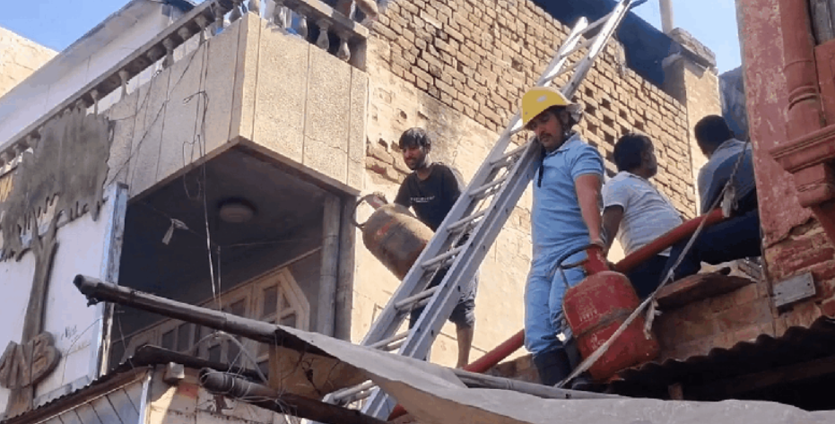 बीकानेर। बीकानेर से इस वक्त बड़ी खबर सामने आई है, जहां शहर के सबसे व्यस्ततम इलाके केईएम रोड बाजार स्थित अग्रवाल नमकीन भंडार में आग लग गई। उठते धुएं को देखकर वहां काम कर रहे कर्मचारी बाहर भागे और पुलिस और फायरब्रिगेड को सूचना देकर मौके पर बुलाया। दोनों टीमों ने मौके पर पहुंचकर आग पर काबू पाने के प्रयास शुरू किए। आग की सूचना पर बड़ी संख्या में लोग भी मौके पर एकत्रित हो गए, जो हर संभव मदद करने का प्रयास कर रहे है। जानकारी के अनुसार अग्रवाल नमकीन भंडार के ऊपरी तले में आग लगी है, जहां नमकीन तैयार होता है। यहां गैस सिलेंडर सहित अन्यऐसे उपकरण भी रखे हुए है, जिनसे आग विकराल रूप ले सकती है, हालांकि कर्मचारियों ने एक-एककर गैस सिलेंडर बाहर निकालते हुए काफी हद तक खतरे का कम कर दिया है। फिलहाल मौके पर फायर ब्रिगेड के कर्मचारी आग बुझाने का प्रयास कर रहे हैं।