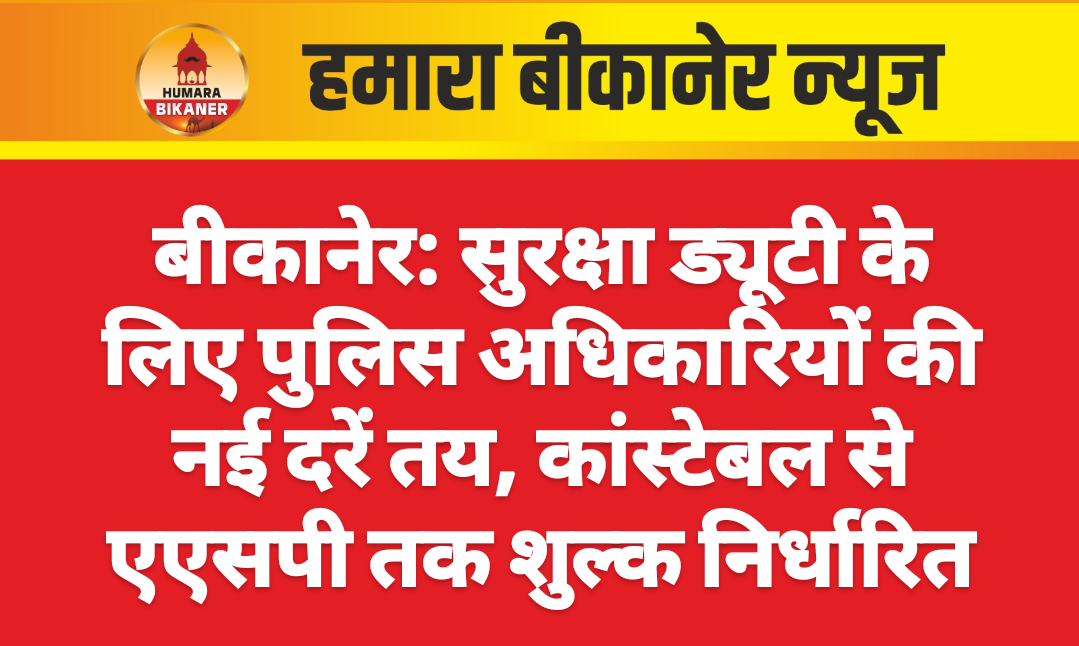 बीकानेर। सुरक्षा व्यवस्था के लिए तैनात किए जाने वाले पुलिस अधिकारियों की प्रतिदिन दरें तय कर दी गई हैं। इनमें कांस्टेबल से लेकर एएसपी स्तर तक के अधिकारियों की दरें शामिल हैं। तय दरों के अनुसार कांस्टेबल की सेवा लेने पर प्रतिदिन 10,233 रुपये तथा एएसपी उपलब्ध कराए जाने पर 23,041 रुपये का भुगतान करना होगा।