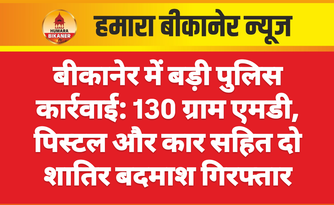 बीकानेर। पुलिस ने पुलिस अधीक्षक कावेंद्र सागर के निर्देशन में बड़ी कार्रवाही करते हुए दो शातिर बदमाशों को पकड़ा है। डीएसटी बीकानेर के इनपुट पर पुलिस थाना देशनोक ने ये कार्रवाई की है। मिली जानकारी के अनुसार आदतन शातिर 2 बदमाश को दबोचा है। दोनों ही काफी लंबे समय से NDPS, गंभीर मारपीट प्रकरण में वांछित थे। दोनों को 130 ग्राम MD , 1 पिस्टल, TATA ZEST कार व 50 हजार रुपए सहित पकड़ा पकड़ा है। आरोपी दिनेश जाखड़ पर पूर्व में दिल्ली में 2 करोड़ की लूट की वारदात का प्रकरण वही श्याम सुंदर श्री बालाजी नागौर के प्रकरण में 2 साल से वांछित था। Dst प्रभारी विश्वजीत सिंह, DST के ASI दीपक यादव के इनपुट पर थानाधिकारी देशनोक सुमन शेखावत मय पुलिस थाना देशनोक स्टाफ ने इस कार्रवाही को अंजाम दिया है।
