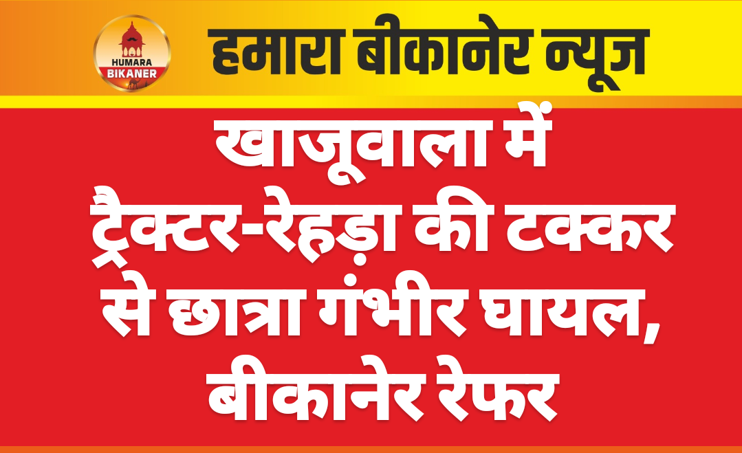 बीकानेर रोड पर विनायक पेट्रोल पंप के पास तेज रफ्तार और लापरवाही से चलाए जा रहे ट्रैक्टर-रेहड़ा ने अचानक कट मार दिया। इससे स्कूटी अनियंत्रित होकर सड़क पर गिर गई और ट्रैक्टर-रेहड़ा छात्रा के ऊपर से निकल गया। हादसे में छात्रा के जबड़े और सिर सहित शरीर के विभिन्न हिस्सों में गंभीर चोटें आई हैं। राहगीरों ने तुरंत उसे अस्पताल पहुंचाया, जहां प्राथमिक उपचार के बाद गंभीर स्थिति को देखते हुए बीकानेर रेफर किया गया। परिजनों का आरोप है कि चालक वाहन सहित मौके से फरार हो गया। पुलिस अज्ञात चालक की तलाश में जुटी है और मामले की जांच जारी है।