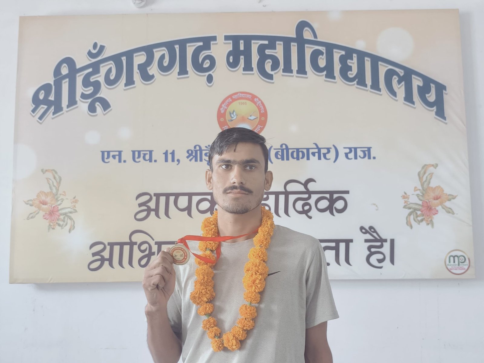 श्रीडूंगरगढ़। कस्बे के श्रीडूंगरगढ़ महाविद्यालय के छात्र ओमप्रकाश पुत्र बक्शाराम ने राजकीय लोहिया महाविद्यालय चुरू में आयोजित महाराजा गंगासिंह विश्वविद्यालय इंटर कॉलेज खेल प्रतियोगिता 10 किलोमीटर क्रॉस कंट्री रेस में विजेता बनकर कस्बे का मान बढ़ाया है। महाविद्यालय के डीपी मुकेश जांगिड़ ने बताया कि खिलाड़ी ओमप्रकाश का चयन इस प्रतियोगिता में विजेता रहने पर महाराजा गंगासिंह यूनिवर्सिटी की टीम में ऑल इंडिया इंटर यूनिवर्सिटी क्रॉस कंट्री रनिंग के लिए हुआ है। अब वह राष्ट्रीय स्तर पर महाराजा गंगासिंह विश्वविद्यालय का प्रतिनिधितत्व करे करेंगे। प्रबंध समिति अध्यक्ष हरिशंकर बाहेती, सचिव श्याम महर्षि व उपसचिव रामचंद्र राठी, विजय महर्षि ने खिलाड़ी की इस उपलब्धि पर उसे सम्मानित कर बधाई दी। महाविद्यालय के प्राचार्य डॉ. विनोद सुथार ने बताया कि खिलाड़ी ओमप्रकाश राष्ट्रीय स्तर पर हरियाणा के रोहतक में आयोजित नेशनल प्रतियोगिता में भाग लेंगे। इस दौरान आयोजित कार्यक्रम में व्याख्याता पवन सिद्ध, रजत कुमार, निशा धामा, सुनील आचार्य, डॉ.राजेश सेवग, मुकेश सैनी सहित स्टॉफ मौजूद रहा।