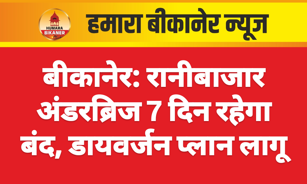 बीकानेर। बीकानेर में शेड निर्माण कार्य के चलते रानीबाजार अंडरब्रिज कल से अगले सात दिनों तक बंद रहेगा। यातायात पुलिस ने सुरक्षा व सुचारु आवागमन के लिए डायवर्जन प्लान लागू कर दिया है। पुलिस के अनुसार सभी वाहन अब अंबेडकर सर्किल से ओवरब्रिज मार्ग होकर गुजरेंगे। आमजन से अपील की गई है कि वे निर्धारित वैकल्पिक मार्ग का उपयोग करें और यातायात नियमों का पालन कर प्रशासन का सहयोग करें।