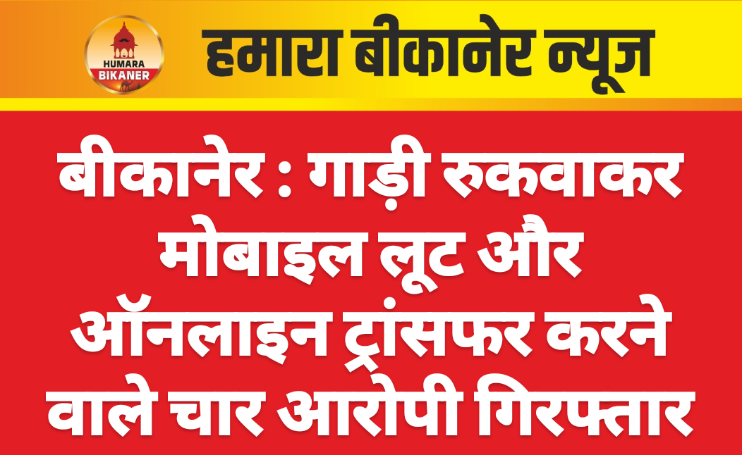 बीकानेर। जेएनवीसी थाना क्षेत्र में गाड़ी रुकवाकर मोबाइल छीनने और फोन पे का पासवर्ड पूछकर पैसे ट्रांसफर करने के मामले में पुलिस ने त्वरित कार्रवाई करते हुए चार आरोपियों को गिरफ्तार किया है। पुलिस ने घटना में प्रयुक्त कार, बाइक और लोहे के पाइप भी बरामद किए हैं। गौरतलब है कि 9 फरवरी को हेतराम ने मुकदमा दर्ज करवाते हुए बताया था कि वह अपने दोस्त को घर छोड़ने जा रहा था। वृंदावन कॉलोनी से पेमासर जाने वाले कच्चे रास्ते पर एक कार और बाइक सवार युवकों ने उसकी गाड़ी रुकवा ली। आरोपियों ने उसके साथ मारपीट की, कार में तोड़फोड़ की और मोबाइल छीन लिया। इसके बाद डरा-धमकाकर फोन पे का पासवर्ड पूछकर खाते से राशि ट्रांसफर कर ली।