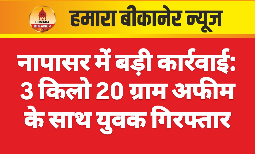 बीकानेर जिले के नापासर क्षेत्र में पुलिस ने मादक पदार्थ तस्करी के खिलाफ बड़ी कार्रवाई की है। नापासर पुलिस थाना और एनडीएफ श्रीगंगानगर की संयुक्त टीम ने एक युवक को 3 किलो 20 ग्राम अफीम के साथ गिरफ्तार किया है। संयुक्त टीम की इस कार्रवाई के बाद इलाके में हड़कंप मच गया। थाना प्रभारी सुषमा शेखावत ने बताया कि संदिग्ध गतिविधियों पर नजर रखते हुए पुलिस ने कार्रवाई को अंजाम दिया। युवक से पूछताछ जारी है और मामले में आगे की जांच की जा रही है। पुलिस टीम मादक पदार्थ तस्करी से जुड़े अन्य पहलुओं की भी पड़ताल कर रही है, ताकि नेटवर्क से जुड़े अन्य आरोपियों तक भी पहुंचा जा सके। अधिकारियों के अनुसार, अवैध नशे के कारोबार पर अंकुश लगाने के लिए क्षेत्र में लगातार सघन अभियान चलाया जा रहा है।