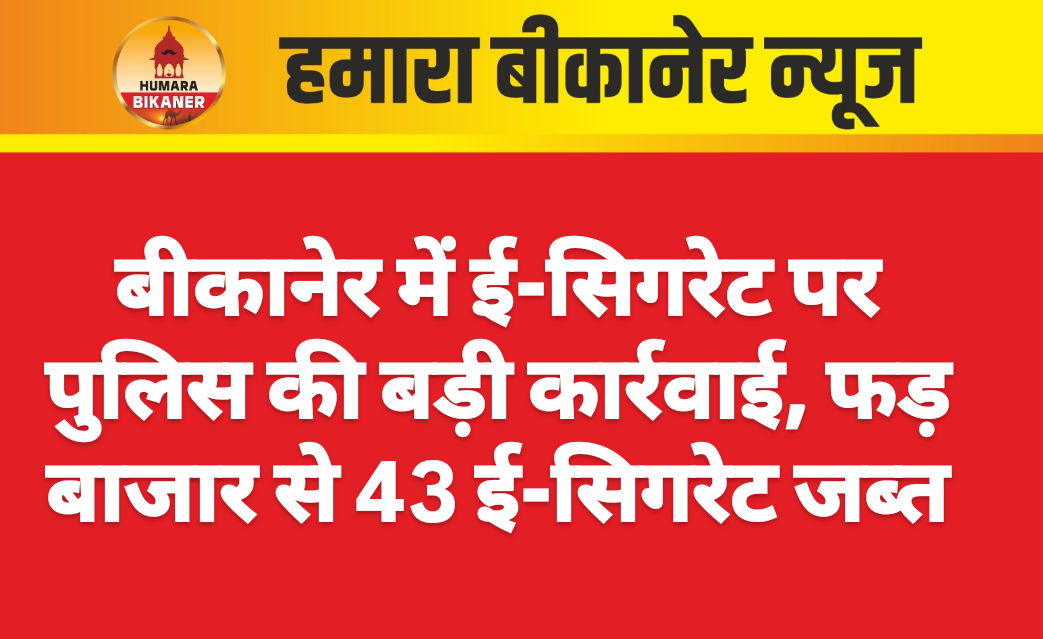 बीकानेर।ई सिगरेट के खिलाफ पुलिस ने कार्रवाई करते हुए बड़ी मात्रा में ई सिगरेटों को जब्त किया है। यह कार्रवाई कोटगेट पुलिस ने की है। पुलिस टीम ने सीओ सिटी अनुज डाल के सुपरविजन में थानाधिकारी धीरेन्द्र सिंह की टीम ने कार्रवाई की है। पुलिस टीम ने ई सिगरेट के खिलाफ कार्रवाई करते हुए फड़ बाजार में स्थित गोविंद मार्केट से इलेक्ट्राकि सिगरेट बरामद की है। पुलिस ने 43 ई सिगरेट बरामद की है साथ ही पुलिस ने ई सिगरेट बेचने वाले व्यक्ति को भी पकड़ा है।