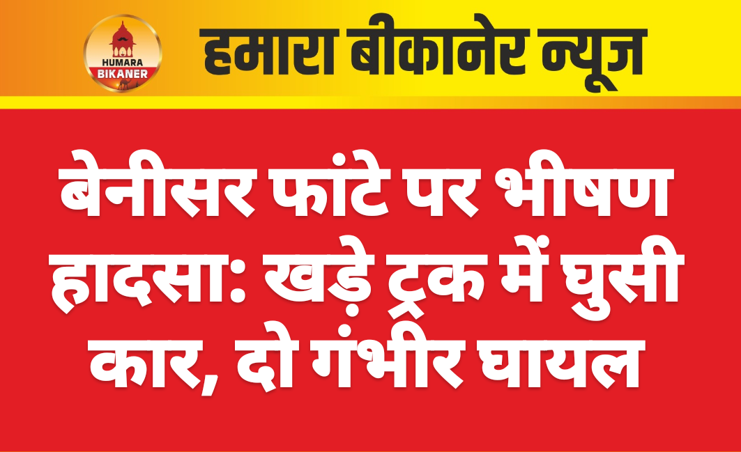 बीकानेर।नेशनल हाईवे पर खड़े ट्रक में कार के पीछे से भिड़ जाने की खबर सामने आयी है। घटना श्रीडूंगरगढ़ पुलिस थाना क्षेत्र के बेनीसर फांटे के पास की है। जहां पर ट्रक खड़ा था और बीकानेर साइड से जा रही गाड़ी पीछे से खड़े ट्रक में घुस गयी। कार में सवार दो लोग इस हादसे में बुरी तरीके से जख्मी हो गए। जिनको आसपास के लोगों के सहयोग से अस्पताल ले जाया गया। जहां पर प्राथमिक उपचार के दोनो को बीकानेर रैफर कर दिया गया है। हादसा इतना भयावह था कि हादसे में कार आगे से बुरी तरीके से क्षतिग्रस्त हो गयी। घायलों की पहचान हरियाणा के रहने वाले मनोज, सीताराम के रूप में हुई है।