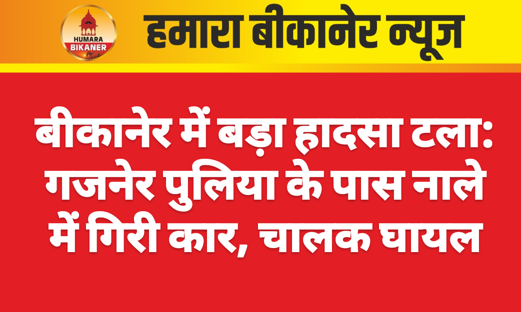बीकानेर. बीकानेर में सोमवार रात एक बड़ा हादसा होते-होते टल गया। रात करीब 10 बजे गजनेर पुलिया के पास सुभाषपुरा की ओर जाने वाले मार्ग पर एक स्विफ्ट कार अनियंत्रित होकर खुले और गहरे नाले में जा गिरी। हादसे में कार चालक घायल हो गया, जिसे स्थानीय लोगों की सूझबूझ और तत्परता से सुरक्षित बाहर निकाल लिया गया। प्रत्यक्षदर्शियों के अनुसार अंधेरा होने और सड़क किनारे सुरक्षा इंतजाम नहीं होने के कारण चालक को नाले का अंदाजा नहीं हो पाया। कार अचानक संतुलन खो बैठी और सीधे नाले में जा गिरी।वाहन का अगला हिस्सा लगभग पूरी तरह नाले में धंस गया। जोरदार आवाज सुनकर आसपास के लोग तुरंत मौके पर पहुंचे और राहत कार्य शुरू किया। स्थानीय युवकों ने बिना देर किए कार के दरवाजे खोले और घायल व्यक्ति को बाहर निकाला। प्राथमिक उपचार के बाद उसे अस्पताल पहुंचाया गया। गनीमत रही कि कोई बड़ी जनहानि नहीं हुई, हालांकि कार को भारी नुकसान पहुंचा है।