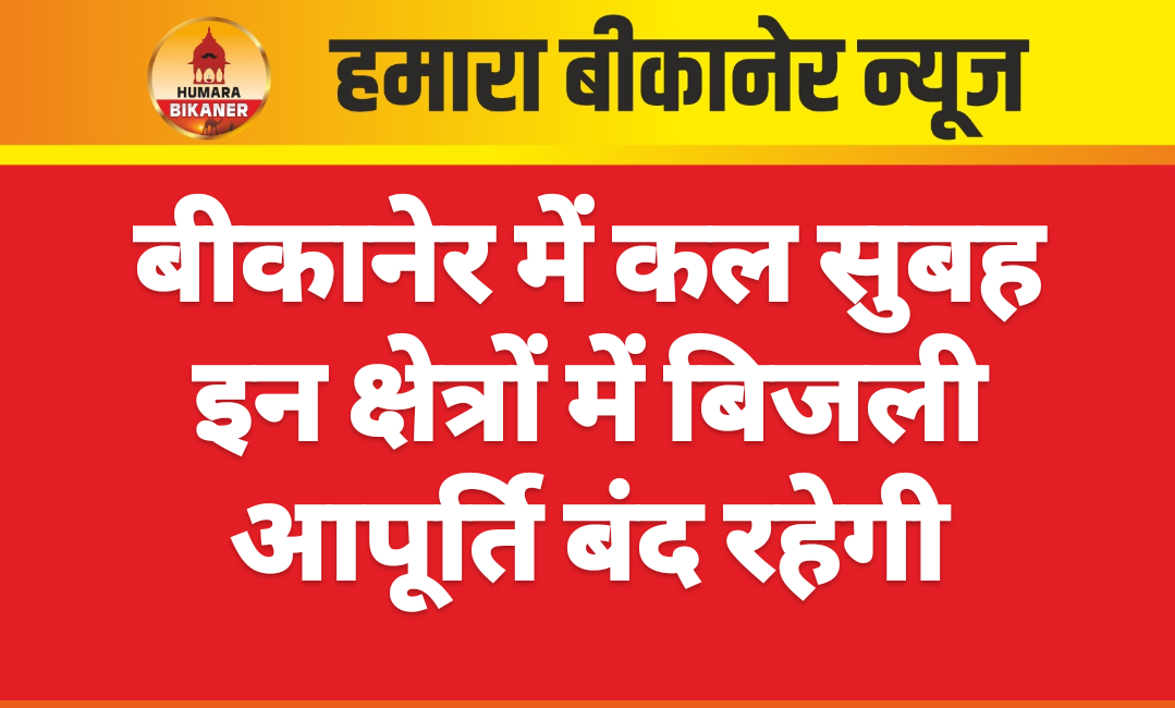 उदासर गांव, पेमासर गांव और ग्रामीण क्षेत्र, विराट नगर, आर्मी गेट के पास, डिफेंस कॉलोनी, हेत नगर, मिडटाउन स्कूल के पास, वैशाली नगर, गांधी चौक, ग्रीन फील्ड स्कूल के पास, पंचारिया कॉलोनी, करणी विहार कॉलोनी, भावर कॉलोनी 1 और 2, श्रीनाथ एन्क्लेव, हार्मनी कॉलोनी, नेचुरल ग्रीन के पास, शाना स्कूल, दो भाई डेवलपर कॉलोनी, बीकानो रिजॉर्ट, पोल फैक्ट्री का क्षेत्रं प्रातः 10:00 बजे से दोपहर 03:00 बजे तक भीनासर सामुदायिक भवन के पास का क्षेत्र।प्रातः 08:00 बजे से दोपहर 12:00 बजे तक रामदेव जी मंदिर चोपड़ाबाड़ी के पीछे, भेरू जी मंदिर के पास का क्षेत्र।दोपहर 01:00 बजे से सांय 05:00 बजे तकगहलोत पाइप फैक्ट्री के पास, सुजानदेसर गांव का क्षेत्र।प्रातः 07:30 बजे से दोपहर 12:00 बजे तक बांदरा बास का क्षेत्र।प्रातः 10:00 बजे से दोपहर 02:00 बजे तक भानी माली जी की बड़ी नाथूसर बास के पास, मधुर पब्लिक स्कूल के पीछे नाथूसर बास, मालियों का मोहल्ला नाथूसर बास प्रातः 07:00 बजे से 09:00 बजे तक पारीक चौक, कसाई बाड़ा, बिन्नाणी चौक, सोनगिरी कुआ, दाउजी मन्दिर रोड, चूनगरो का मौहल्ला, जोशीवाडा, दो पीर, डागा चौक, सिपाईयो का मौहल्ला, भाटियो का चौक, असानियो का चौक, तेली बाड़ा, चुनगरो का मौहल्ला, सिक्को का मौहल्ला, रामपुरिया कॉलेज, बख्तावरो का कुआं, सोनगिरी कुआ, जगमग कुआं, रामा मोदी, प्रताप मॉल के पीछे, कसाई बाड़ी, मीट मार्केट का क्षेत्र।प्रातः 11:00 बजे से दोपहर 01:00 बजे तक 10 नंबर स्कूल के पास, सुभाष रोड, अब्बासी मेडिकल के पास, गौरी जूस सेंटर का क्षेत्र।प्रातः 07:00 बजे से 09:00 बजे तक करनी नगर, गांधी कॉलोनी पवनपुरी का क्षेत्र।दोपहर 12:00 बजे से सांय 04:00 बजे तक वाई ब्लॉक वल्लभ गार्डन का क्षेत्र।प्रातः 09:00 बजे से दोपहर 01:00 बजे तक सुदर्शना नगर, साई बाबा मन्दिर का क्षेत्र।