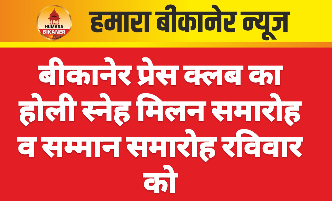 बीकानेर. पत्रकार संगठन बीकानेर प्रेस क्लब की ओर से रविवार 1 मार्च को रानी बाजार इंडस्ट्रियल एरिया में स्थित होटल पाणिग्रहण में होली स्नेह मिलन समारोह और सम्मान समारोह का आयोजन किया जाएगा। प्रेस क्लब अध्यक्ष कुशाल सिंह मेड़तिया ने बताया की दोपहर 12:15 बजे से कार्यक्रम की शुरुआत होगी। इस दौरान पत्रकारिता के क्षेत्र में उत्कृष्ट कार्य करने वाले पत्रकारों को गौरव अवार्ड देकर सम्मानित भी किया जाएगा। कार्यक्रम में चंग पर धमाल सहित सांस्कृतिक कार्यक्रम भी आयोजित किए जाएंगे। कार्यक्रम को लेकर तैयारी पूरी कर ली गई है। समारोह में मुख्य अतिथि के रूप में बीकानेर पश्चिम विधायक जेठानंद व्यास, खाजूवाला विधायक डॉ. विश्वनाथ मेघवाल तथा रेंज आईजी ओमप्रकाश उपस्थित रहेंगे।