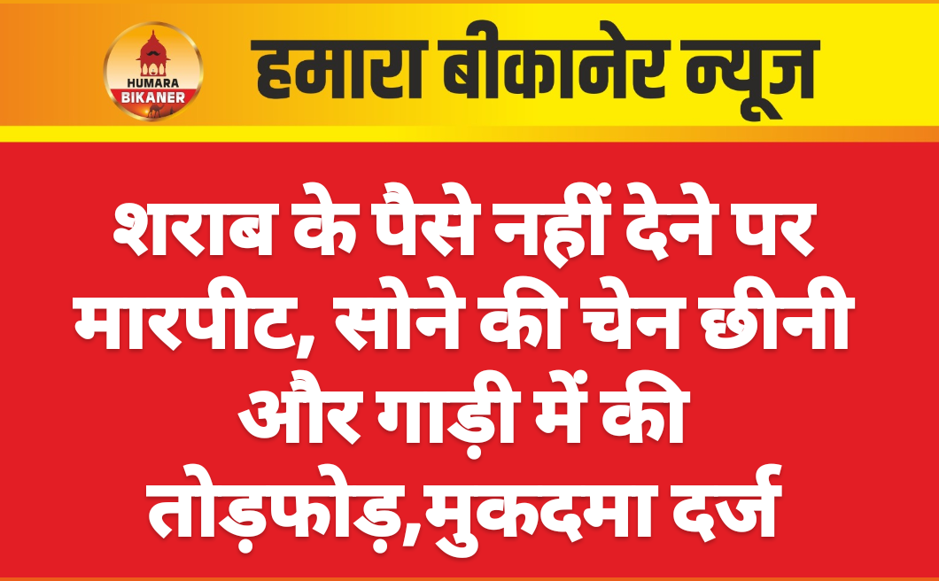 बीकानेर।शराब के लिए पैसे नहीं देने पर मारपीट करने और तोडफ़ोड़ करने का मामला सामने आया है। इस सम्बंध में बीछवाल पुलिस थाने में गर्वमेंट प्रेस रोड़ पर रहने वाले देवेन्द्र ङ्क्षसह ने भागीरथ, हनी, कुसारगर, आंनद, प्रेम, जीतु व अन्य के खिलाफ मुकदमा दर्ज करवाया है। घटना 4 मार्च की शाम को बालाजी डिपार्टमेंट स्टोर की है।इस सम्बंध में प्रार्थी ने बताया कि आरोपी एकराय होकर आए और उससे शराब के लिए पैसे मंागे।जब प्रार्थी ने पैसे देने से इंकार कर दिया तो आरोपियों ने उसके साथ मारपीट की और सोने की चैन छीन ली साथ ही गाड़ी के साथ तोडफ़ोड़ की। पुलिस ने प्रार्थी की रिपोर्ट के आधार पर मुकदमा दर्ज कर जांच शुरू कर दी है।