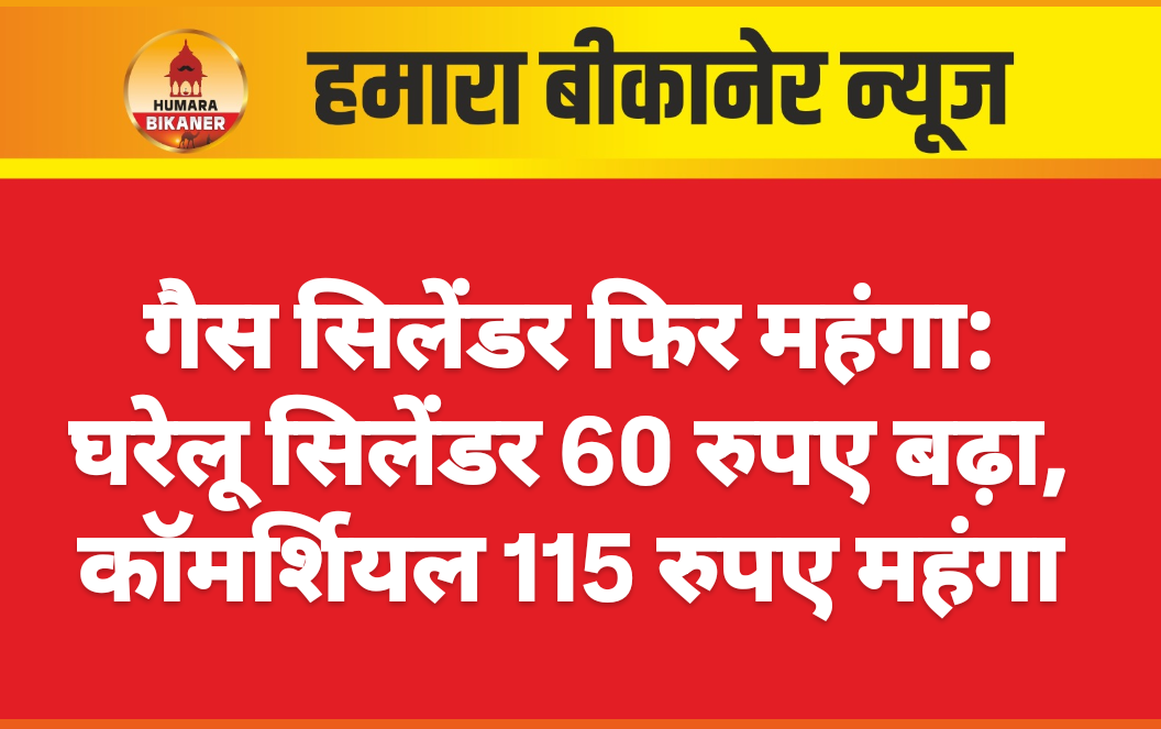 बीकानेर।दुनियाभर में युद्ध को लेकर हलचल तेज है। जिसका सीधा असर भारत में भी देखने को मिल रहा है। अब ये असर आमआदमी की जेब पर पड़ने वाला है। केंद्र सरकार ने घरेलू गैस सिलेंडर 60 रुपए महंगा कर दिया है। दिल्ली में 14.2 किलोग्राम की गैस अब 913 रुपए की मिलेगी। पहले यह 853 रुपए की थी। वहीं 19 किग्रा वाले कॉमर्शियल सिलेंडर में 115 रुपए का इजाफा किया गया है। यह अब 1883 रुपए का मिलेगा।बढ़ी हुई कीमतें 7 मार्च से लागू हो गई है। इससे पहले सरकार ने 8 अप्रैल 2025 को घरेलू सिलेंडर के दामों में 50 रुपए का इजाफा किया था। यानी ये बढ़ोतरी करीब एक साल बाद की गई है। वहीं 1 मार्च 2026 को कॉमर्शियल गैस सिलेंडर के दाम 31 रुपए तक बढ़ाए गए थे। सरकार ने गैस के दामों में बढ़ोत्तरी ऐसे वक्त की है जब अमेरिका-इजराइल और ईरान जंग के चलते देश में गैस किल्लत की आशंका जताई गई है।
