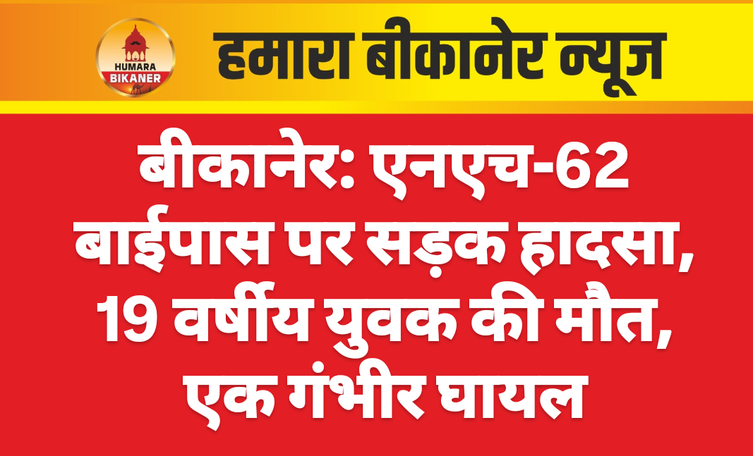 बीकानेर। नोखा-नागौर रोड स्थित एनएच-62 बाईपास पर शुक्रवार रात को एक सड़क हादसे में एक युवक की मौत हो गई, जबकि दूसरा गंभीर रूप से घायल हो गया। यह घटना चरकड़ा गांव के पास हुई, जब बाइक अचानक सड़क पर पशु आ जाने से अनियंत्रित होकर फिसल गई। हादसे में नागौर जिले के जानेवा निवासी विक्रम जाट (19) और मूलसिंह कादरपुरा नागौर गंभीर रूप से घायल हो गए। आसपास के लोगों ने दोनों घायलों को तुरंत नोखा के जिला अस्पताल पहुंचाया। डॉक्टरों ने जांच के बाद विक्रम जाट को मृत घोषित कर दिया।