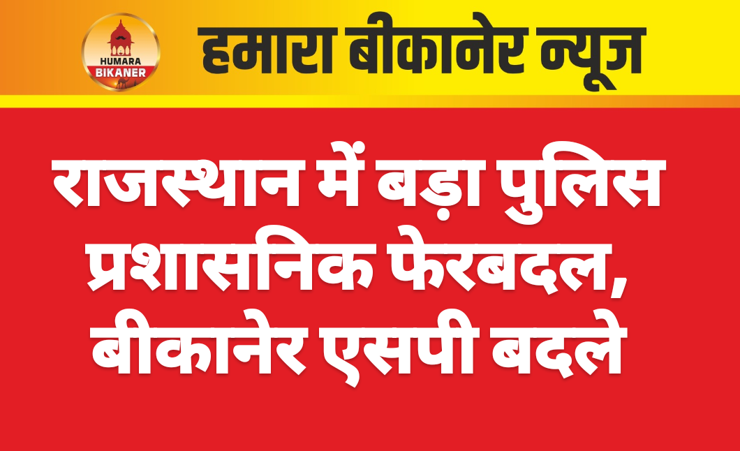बीकानेर। राजस्थान सरकार ने शुक्रवार आधी रात को बड़ी सर्जरी करते हुए कई जिलों के एसपी बदल दिये। भारतीय पुलिस सेवा अधिकारियों करीब 64 जनों के तबादले किये है। जिसमें अजय सिंह उपमहानिरीक्षक पुलिस सुरक्षा जयपुर को अतिरिक्त पुलिस आयुक्त पुलिस आयुक्तालय जयपुर, योगेश यादव उपनिरीक्षक एंव नारकोटिक्स को उपमहानिरीक्षक पुलिस आतंकवाद निरोधक दस्ता एटीएस जयपुर,राशी डोगारा डूडी पुलिस अधीक्षक जयपुर ग्रामीण को उप महानिरीक्षक पुलिस सीआईडी जयपुर, ममता गुप्ता पुलिस अधीक्षक राजसमन्द को उप महानिरीक्षक पुलिस सुरक्षा जयपुर, देवेन्द्र बिश्नोई पुलिस अधीक्षक कोटपूतली बहरोड़ को उपमहानिरीक्षक पुलिस आर.पी.टी.सी जोधपुर, वहीं बीकानेर के कावेन्द्र सिंह सागर को पुलिस अधीक्षक सिविल राईट्स जयपुर तबादला किया है। अब सागर की जगह मृदुल कच्छावा नागौर एसपी की जगह अब बीकानेर के नये पुलिस अधीक्षक होंगे