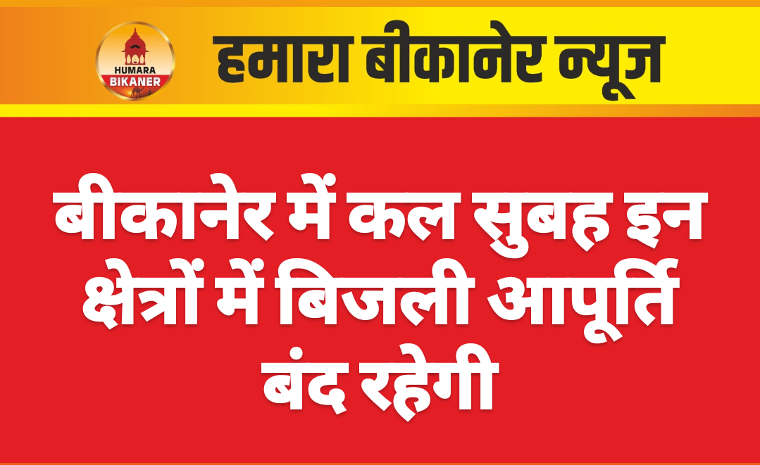 बिजली-कटौती बीकानेर शहर के निम्न क्षेत्रों में विद्युत तंत्र के रख-रखाव के दौरान बुधवार 18 मार्च को प्रातः 08:00 बजे से दोपहर 12:30 बजे तक विद्युत आपूर्ति बाधित रहेगी।खारा रीको इण्ड एरिया फीड न 1 से 7 का क्षेत्र।प्रातः 06:30 बजे से 10:00 बजे तक हिंदू छीपों का मोहला, नायको का मौहल्ला, मेन रोड का क्षेत्र।दोपहर 02:00 बजे से सांय 06:00 बजे तक पशु चिकित्सा अस्पताल बांदाबास और मेन रोड का क्षेत्र।प्रातः 07:00 बजे से 08:30 बजे तक रानी बाजार रोड न 1 से 12 का क्षेत्र।प्रातः 06:00 बजे से 10:00 बजे तक दाऊजी रोड, जोशीवाड़ा, कोटगेट, दो पीर के पास, आदि का क्षेत्र।प्रातः 08:00 बजे से दोपहर 01:00 बजे तक सीताराम गेट के पास, जस्सूसर रोड आदि का क्षेत्र।दोपहर 02:00 बजे से सांय 05:30 बजे तक वेद मधाराम कॉलोनी, सोमानी मिल के पास आदि का क्षेत्र।